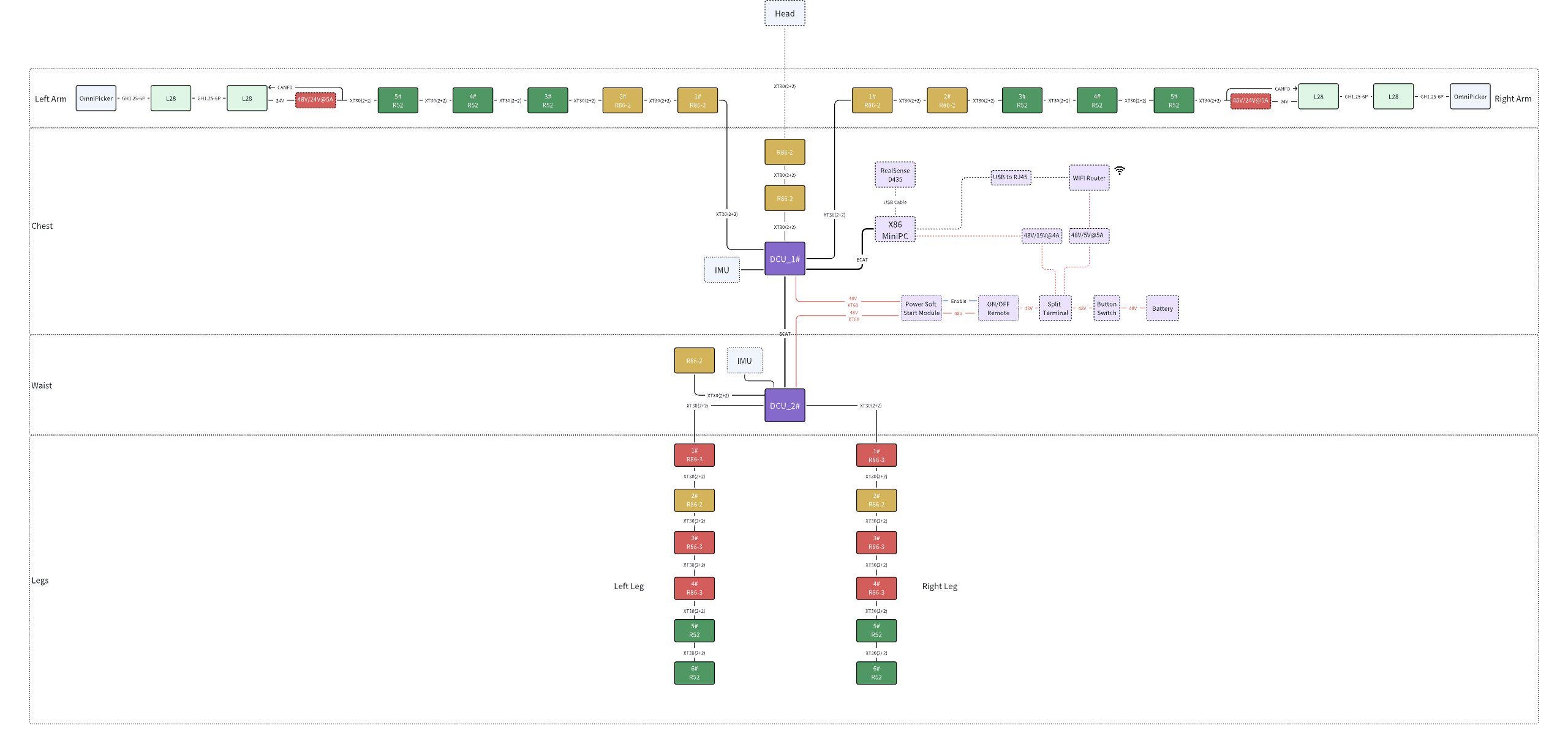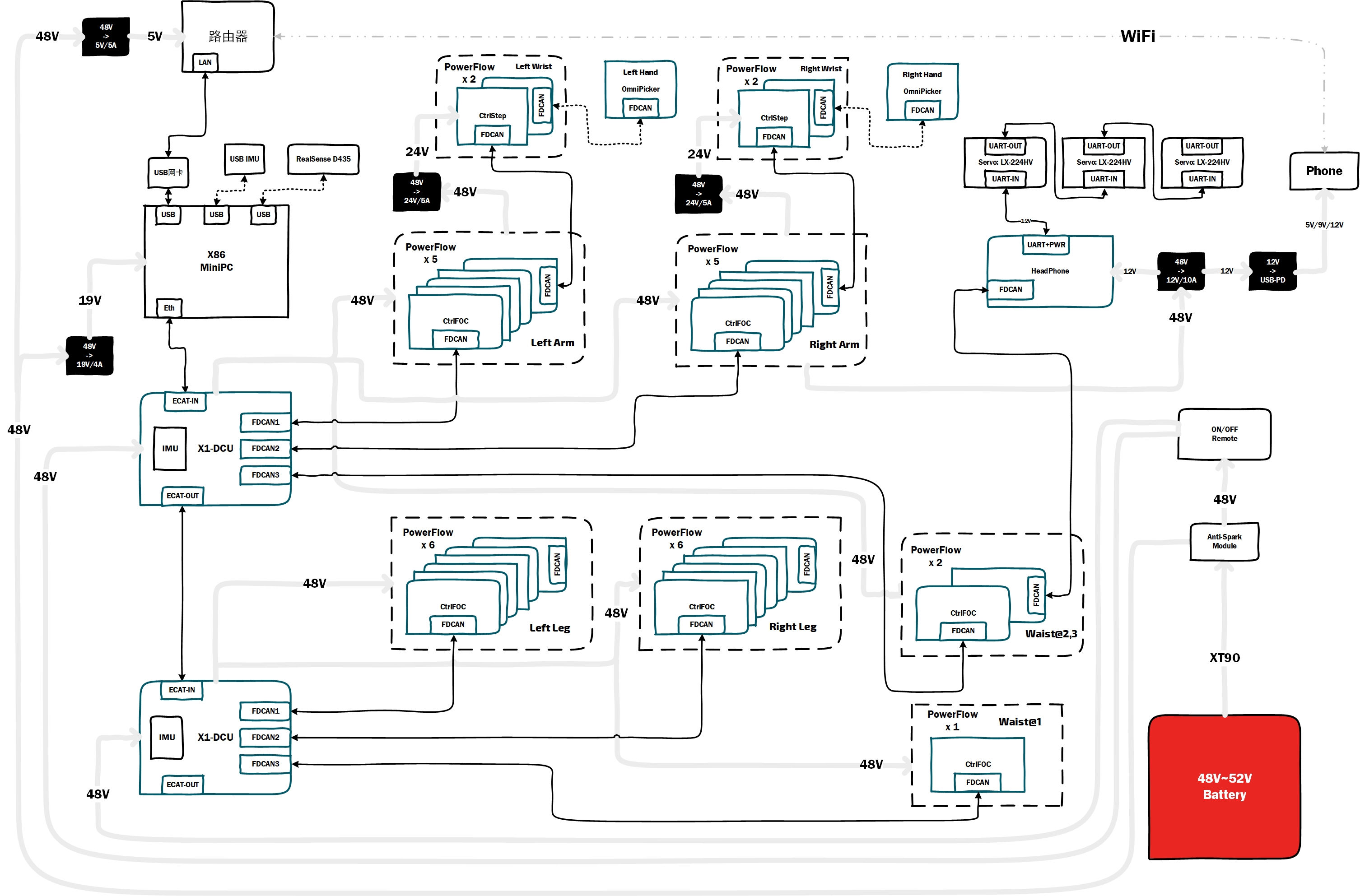 按照整机接线方案进行连接,包含DCU以及所有关节。